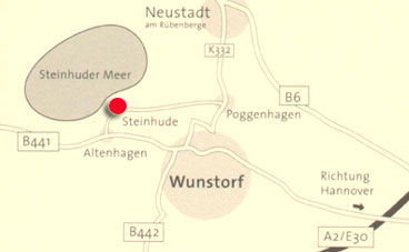 Steinhude liegt ca. 20 km westlich von Hannover. Über die A2 bis Abfahrt Wunstorf-Luthe und dann der B441 nach Steinhude folgen. An der Kreuzung auf der "Leinenweberstraße" in die Straße "Vor dem Tore" einbiegen. Nach ca. 30 m biegen Sie links in die Straße "Unter den Hestern" ein und finden rechts den Eingang zu Typ 14 und 34 Ersatzteilhandel.